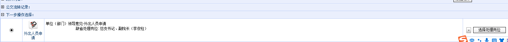(8)党政主要领导填写审批意见后,点选下方 “外出人员申请”,返给请假申请人。