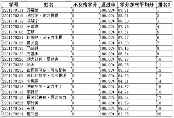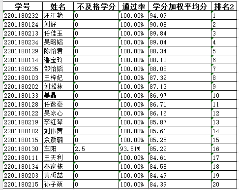 表2 2022级水产养殖学专业成绩排名前30%学生名单