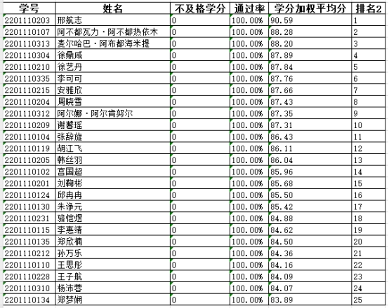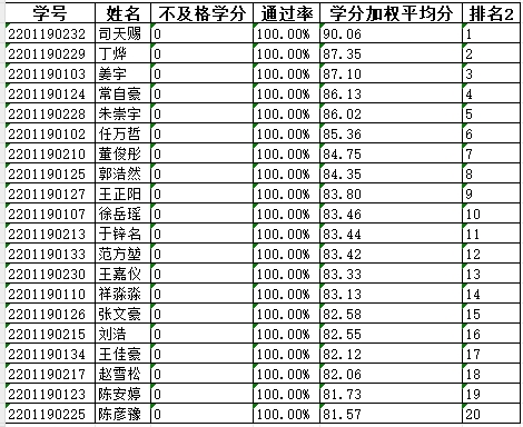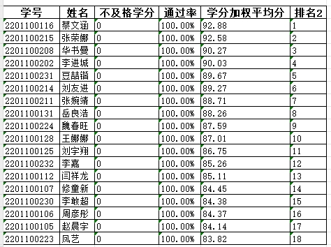 表1 2022级海洋渔业科学与技术专业成绩排名前30%学生名单