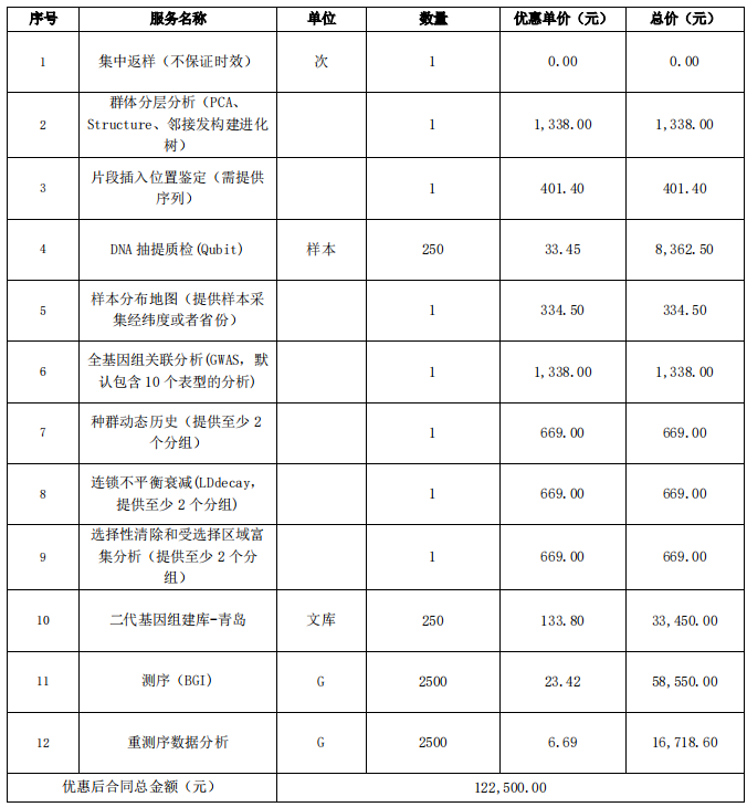 必赢242net采购工作小组就全基因组重测序(群体)技术服务进行了询价采购。现将成交结果公告如下: